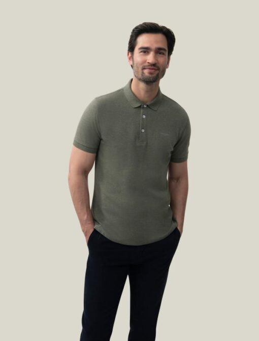 Maak kennis met de Bavone Polo, een tijdloze en veelzijdige keuze voor je garderobe in het voorjaar en de zomer van 2025. Deze polo in een midgroen melange kleur is ideaal voor diverse gelegenheden. Gemaakt van hoogwaardig organisch katoen met een vleugje elastaan, biedt de Bavone Polo zowel comfort als flexibiliteit. De melange garens creëren een subtiele textuur, terwijl het ton-sur-ton logo zorgt voor een minimalistische uitstraling. Met de regular fit pasvorm biedt deze polo het perfecte comfort voor elke gelegenheid.