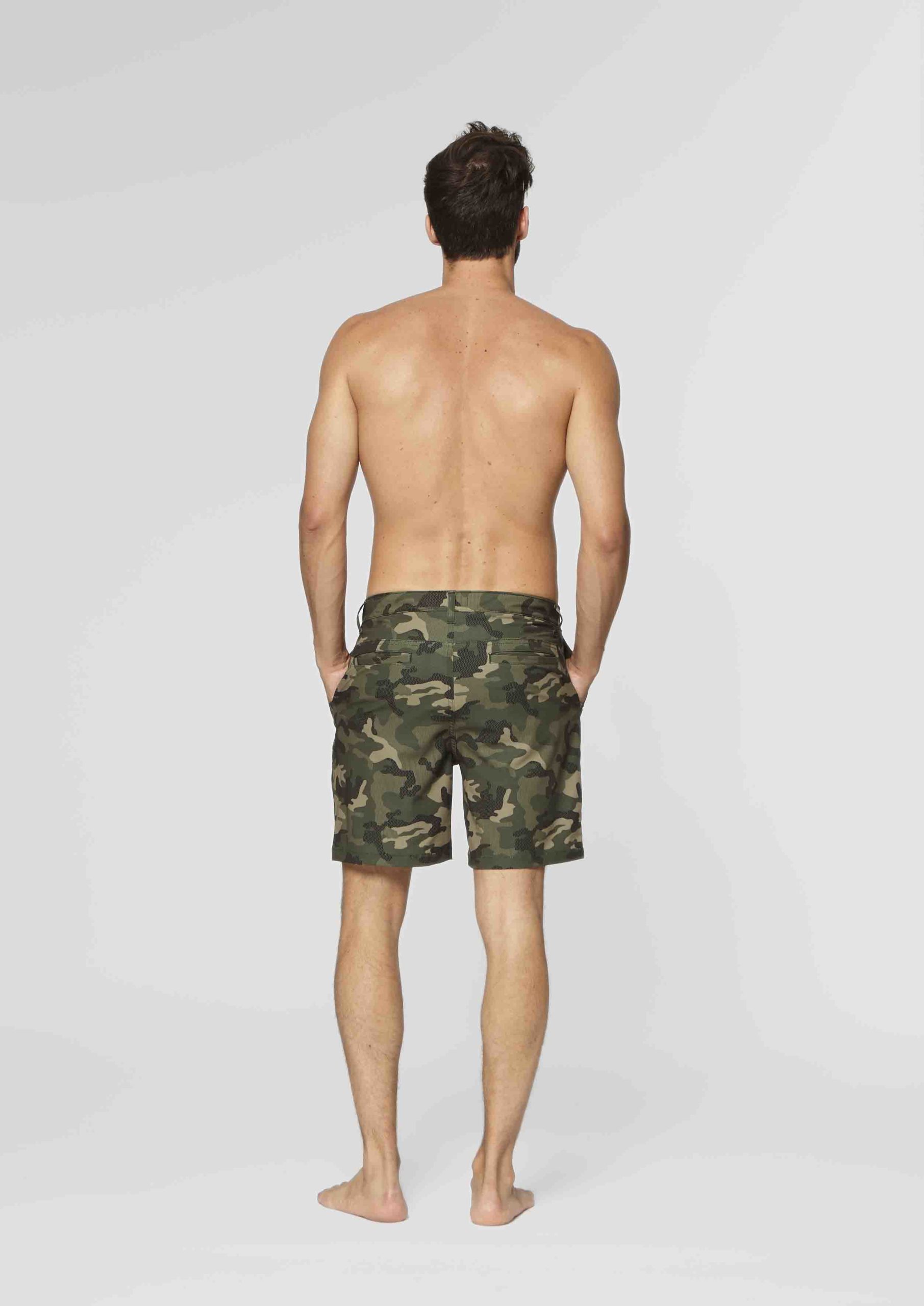 De short heeft een regular fit en is uitgevoerd met een groene camouflage print.