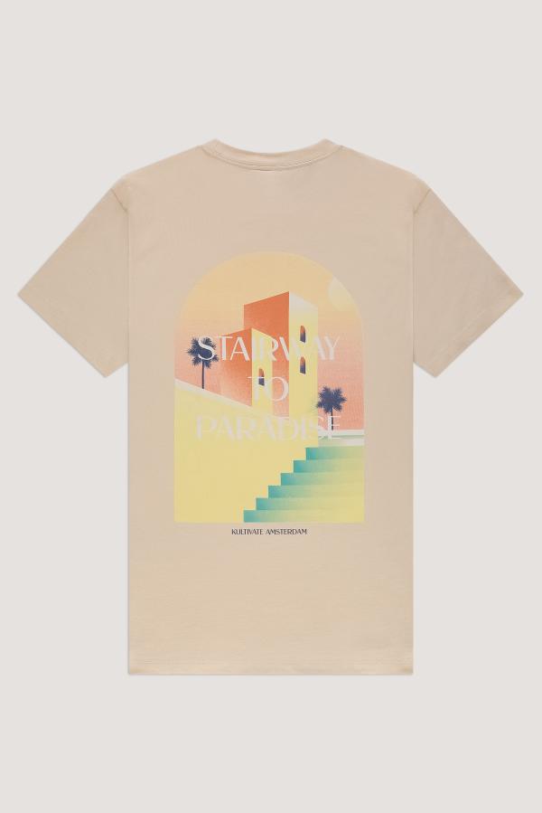 Dit regular-fit ‘Stairway’ T-shirt is bekroond met een grote print aan de achterkant en heeft een kleinere iteratie aan de voorkant. Het heeft korte mouwen, een geribbelde ronde hals en een rechte zoomlijn. Gesneden uit 100% gecertificeerd biologisch katoen.