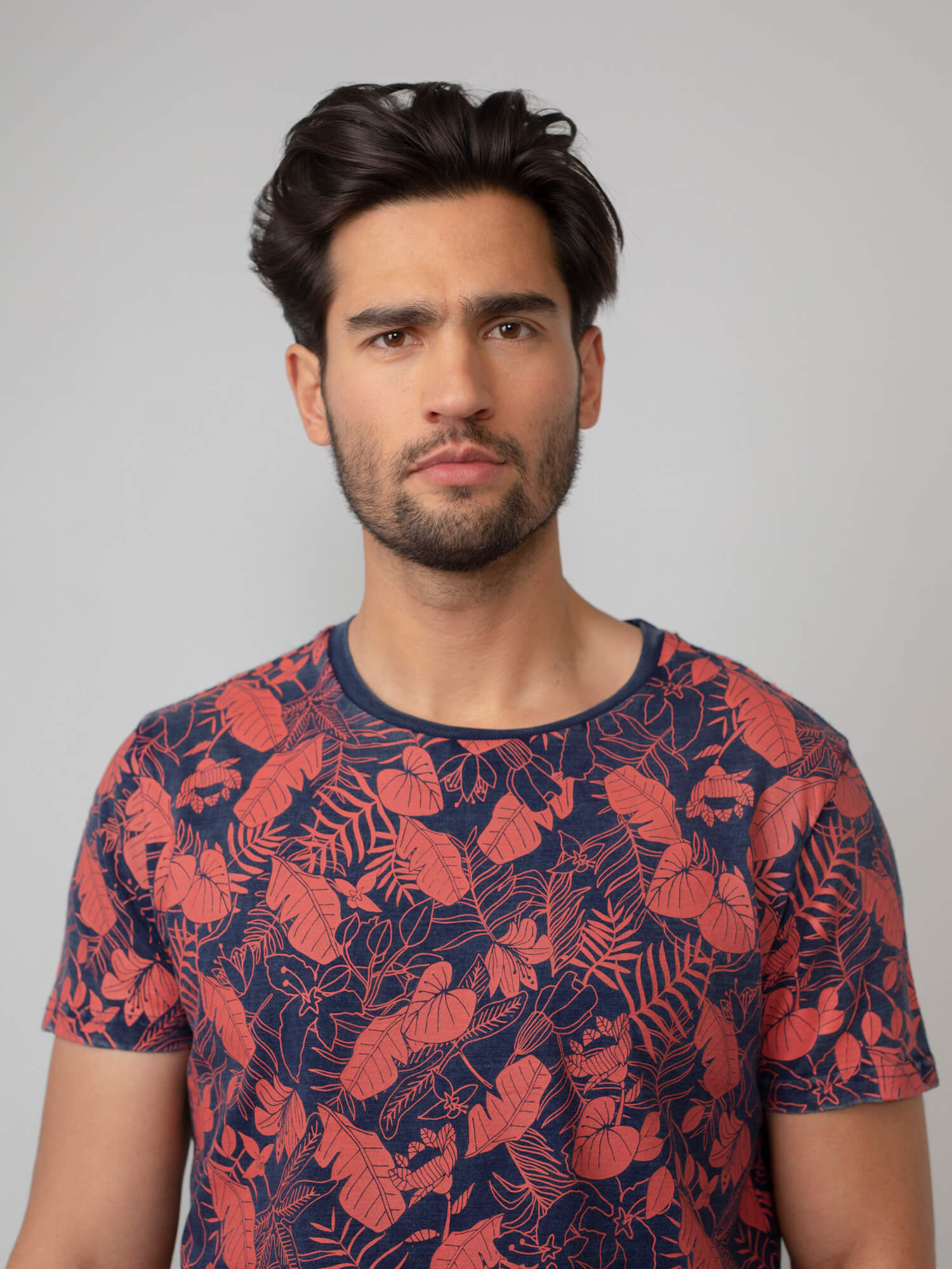 100% katoenen t-shirt met korte mouwen en ronde kraag. Dit zomerse t-shirt heeft een allover botanische print.