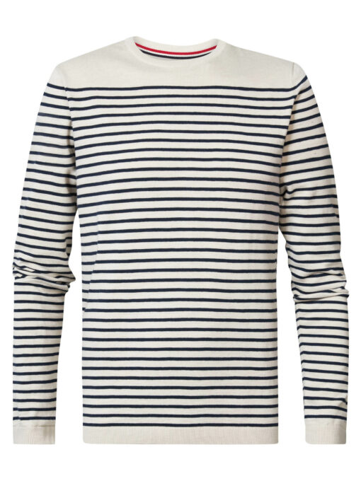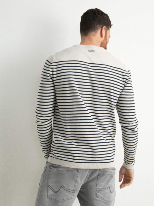 Comfortabele trui met ronde hals en strepen is gemaakt van 100% organisch katoen. Afgewerkt met ribgebreide boorden.