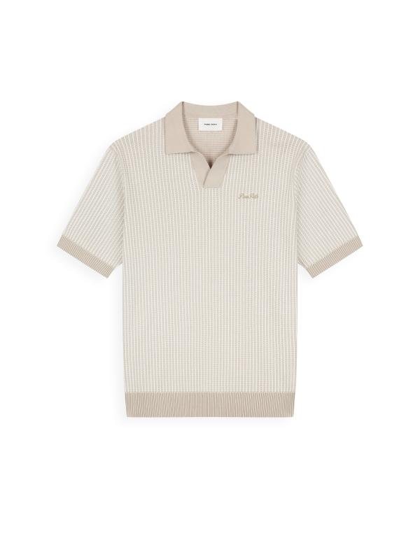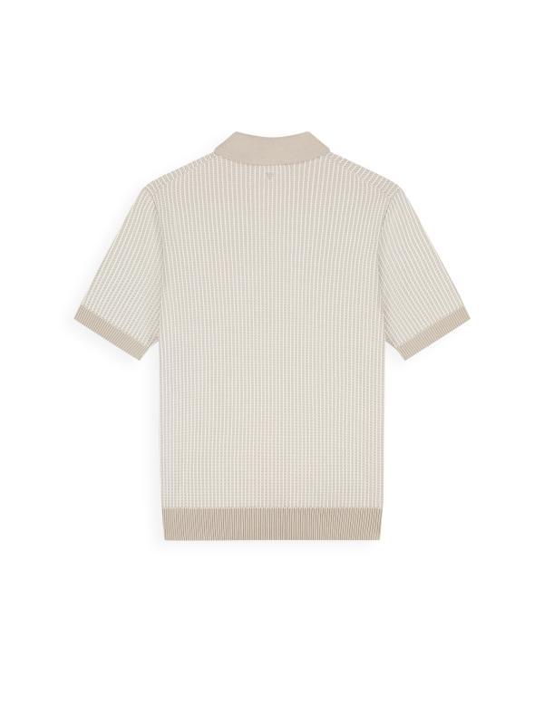 De Ladder Stitch Knit Polo heeft een regular fit met korte mouwen en een cleane polokraag, gemaakt van 100% katoen. De ladder stitch knit is opgebouwd uit twee kleuren en geeft het oppervlak subtiele diepte en structuur. Afgewerkt met ribboorden aan mouwen en body, een geborduurd logo op de borst en een tonale signature triangle in de nek. Een nette en cleane knit, gekenmerkt door rustige structuur en moeiteloze uitstraling.