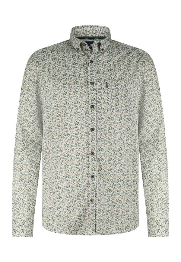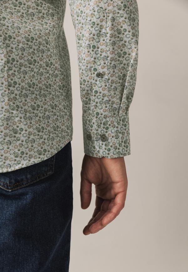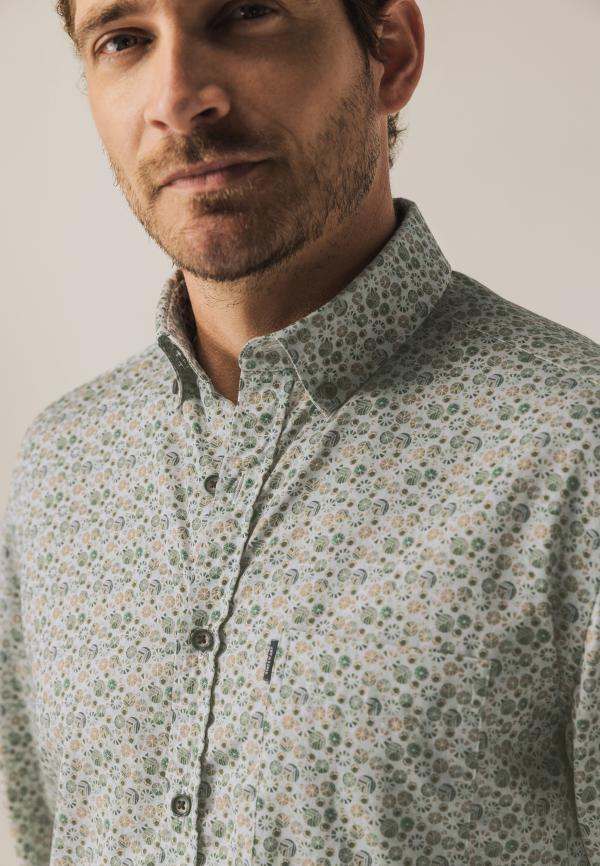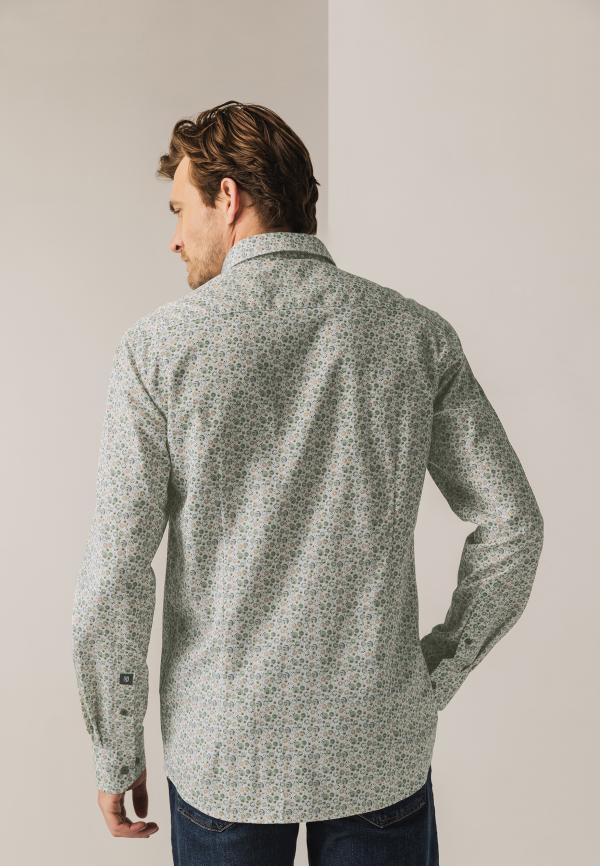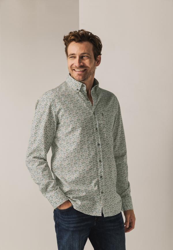 Dit regular fit overhemd is uitgevoerd in een poplinstof van katoen met comfortabele stretch, waardoor de stof stevig, glad en licht aanvoelt met een strakke valling. De button-downkraag, borstzak en verfijnde geometrische all-over print zorgen voor een verzorgde en eigentijdse uitstraling.