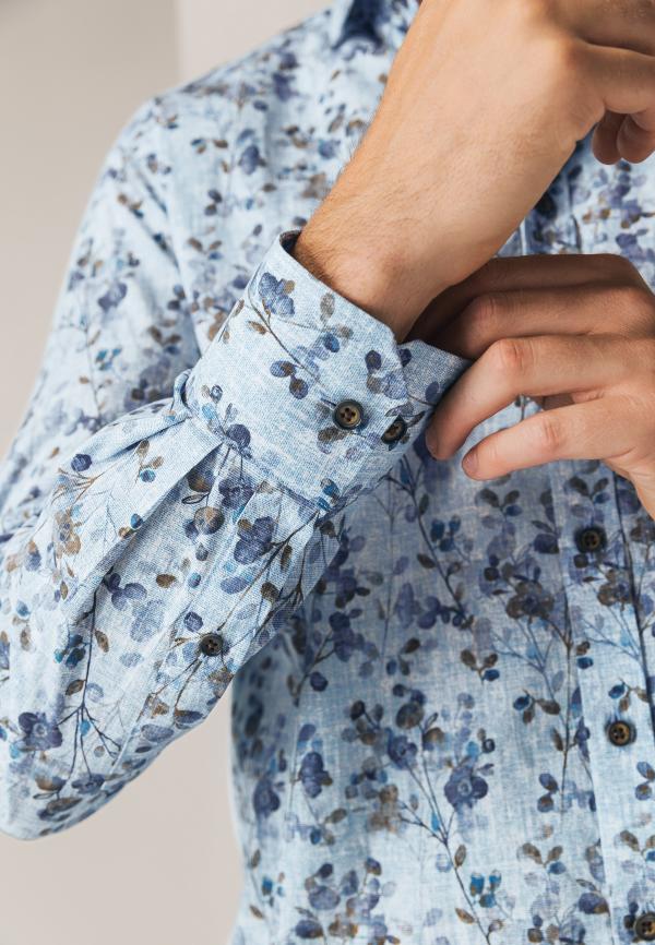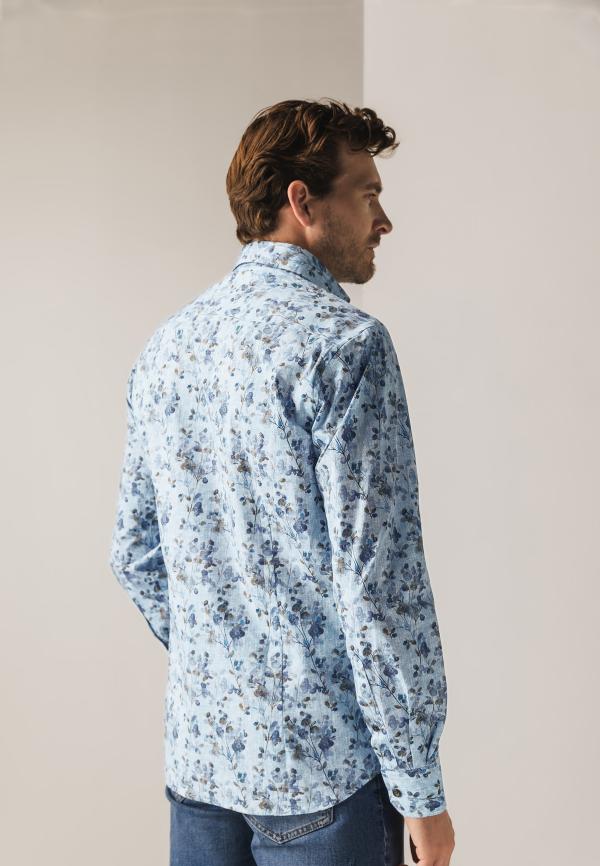 Dit overhemd met botanische print is uitgevoerd in poplinstof met comfortabele stretch, wat zorgt voor een gladde en stevige structuur die prettig draagt. Dankzij de regular fit valt het overhemd soepel om het lichaam, terwijl de gedetailleerde print een verfijnd en natuurlijk accent toevoegt.