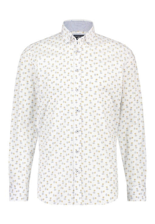 Dit overhemd met bloemenprint heeft een regular fit. Het hemd is uitgevoerd met een button down kraag en een lange mouw. Dit exemplaar is gemaakt van poplin stof, dit houdt in dat de stof nauwelijks kreukt en zacht aanvoelt.