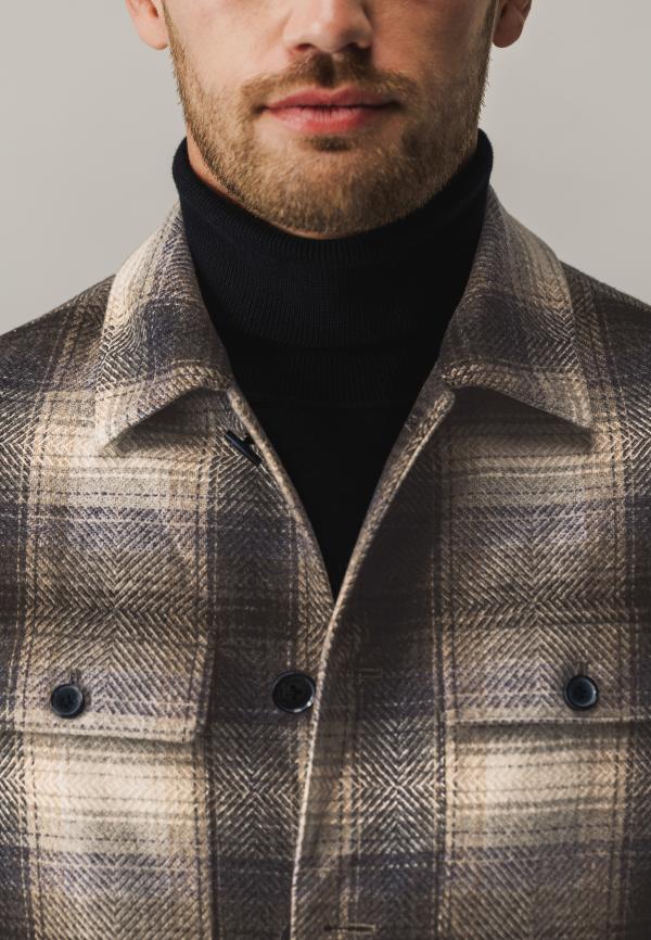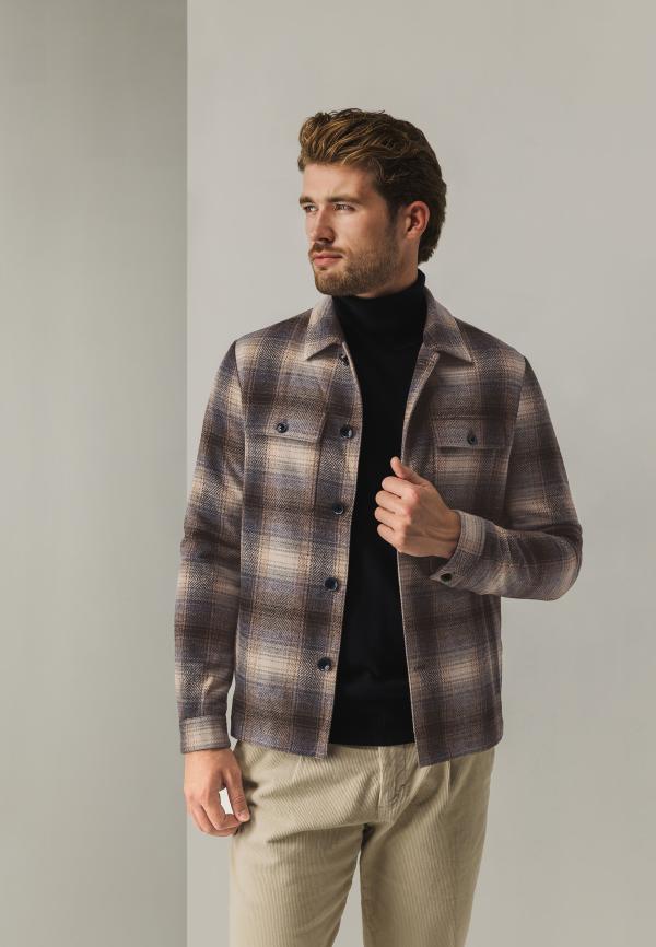 Dit regular fit overshirt met knoopsluiting heeft een opvallend geruit dessin in warme tinten. De mix van wol, polyester en andere materialen voelt stevig aan en biedt aangename warmte, terwijl de klep- en steekzakken samen met de binnenzak zorgen voor praktische functionaliteit. Kan gedragen worden als jas of overshirt.