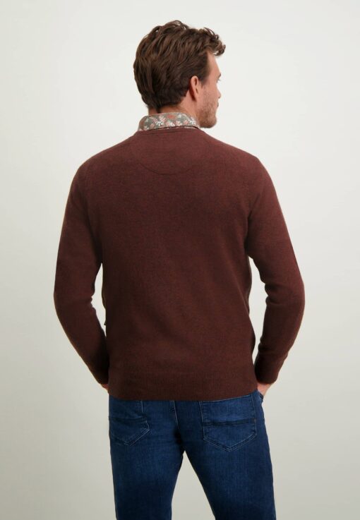 Fijngebreide V-hals trui met regular fit en gemaakt van extra fijne merinowol. Merinowol heeft als eigenschap dat het erg zacht aanvoelt op de huid. De zadelmouwen en het 3D borduursel op linkerborst maken deze trui uniek en eigentijds.